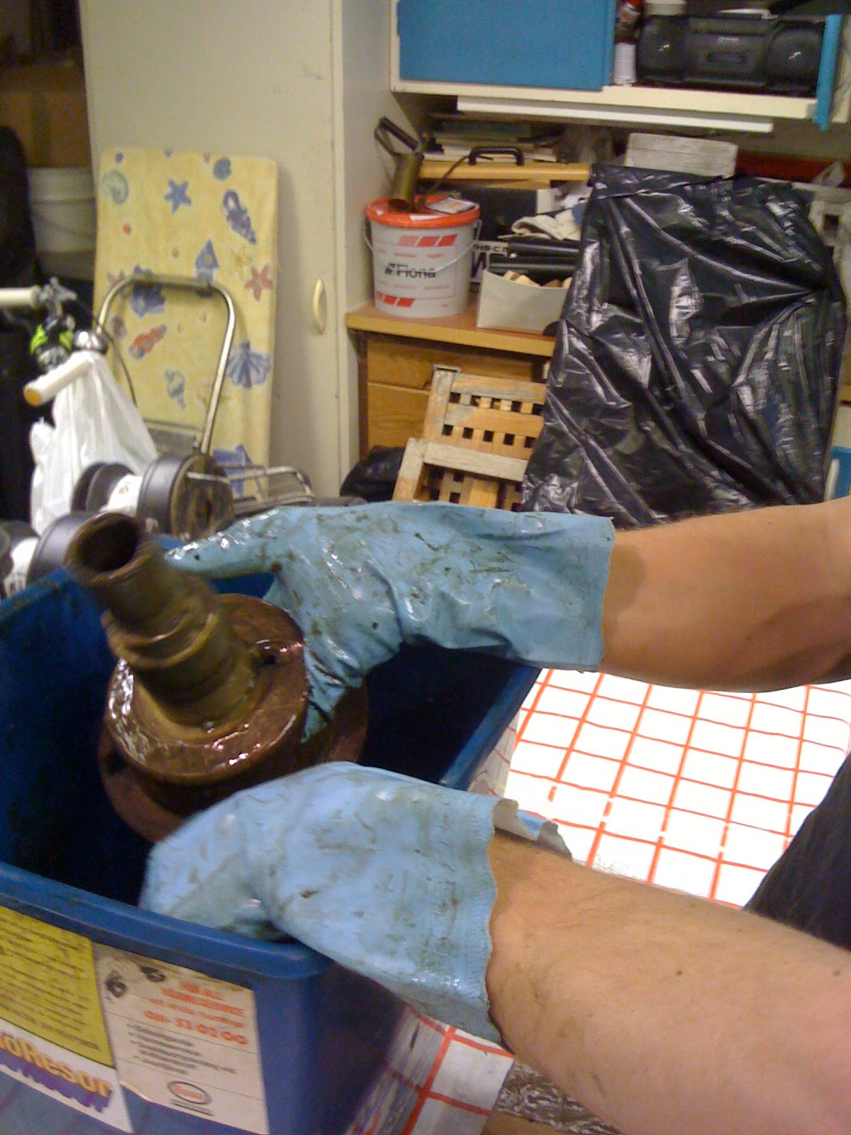 I lördags gjorde jag, Linus, Nikolai och Kalle en insatts då vi bar ner rodret i mitt garage. Detta efter att det har legat ute i snön i dryga två veckor, får skylla vårt dåliga engagemang på skolarbete. I nästa steg ska rodret nu slipas och ligga på tork i någon månad innan vi lägger på Light Primer och bottenfärg.